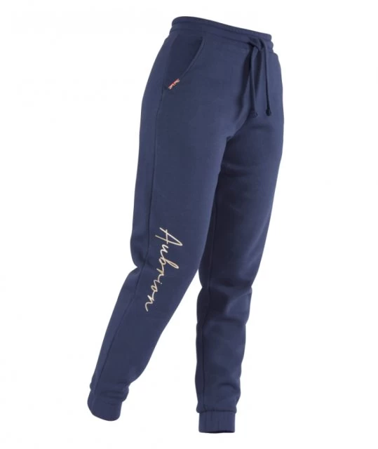 Relaxed glamour styling transforms these Aubrion Team joggers for a laid back but elegant look. Worn on the way to shows, over your best breeches or for relaxing in they feel comfortable and look great. Add matching hoodie for an effortless style experience. The detail: cotton rich cosy jersey with fleecy inner, two hip pockets, waist drawcord, ankle cuffs, Aubrion Team prints.