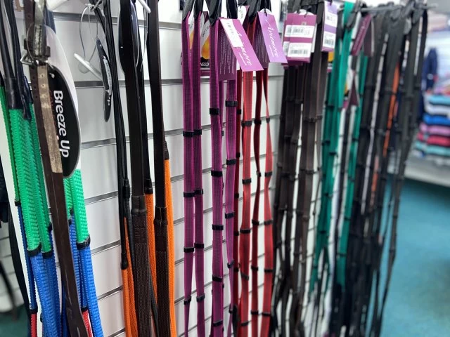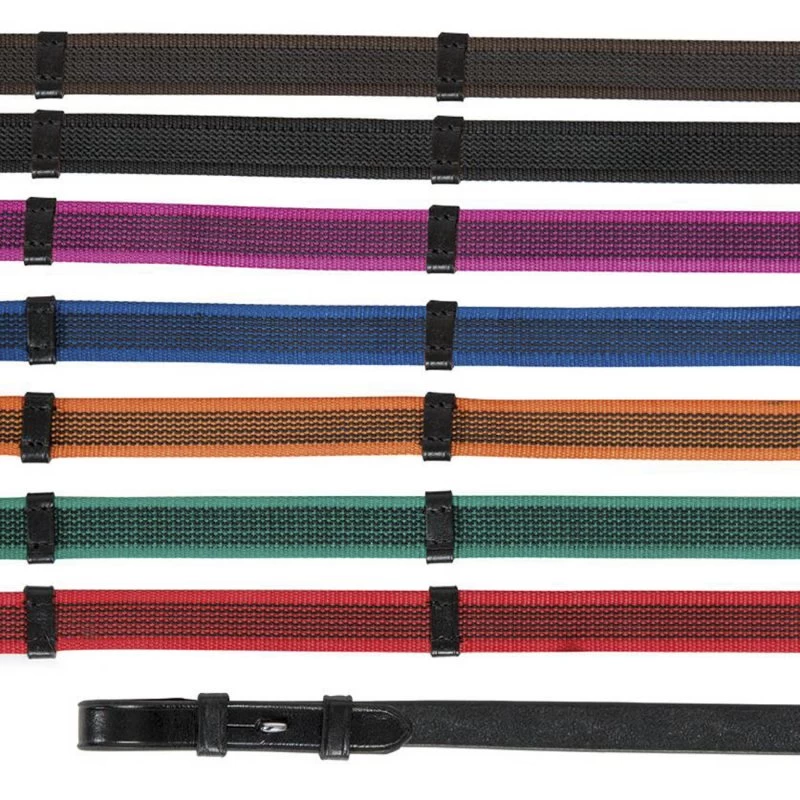 These continental reins feature anti-slip rubber grips in bright colours to complete your look. Hand crafted with Aviemore leather, hook stud billets and stainless steel fittings and available in two lengths.