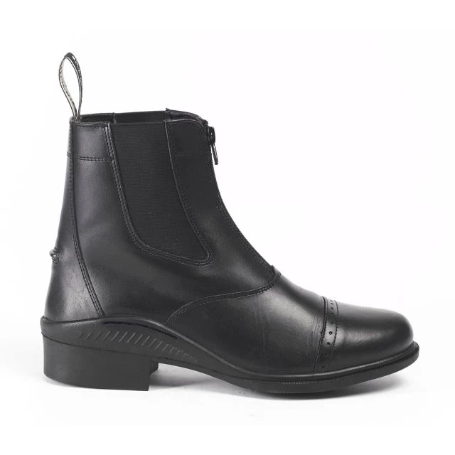 The elegantly designed short paddock boots are hand-crafted from the finest leather, these boots are extremely soft allowing the boots to mould to the shape of the foot. The anti-slip grip rubber sole is hardwearing and long lasting. These boots are created with a front zip and elasticated either side panels for ease of use.,