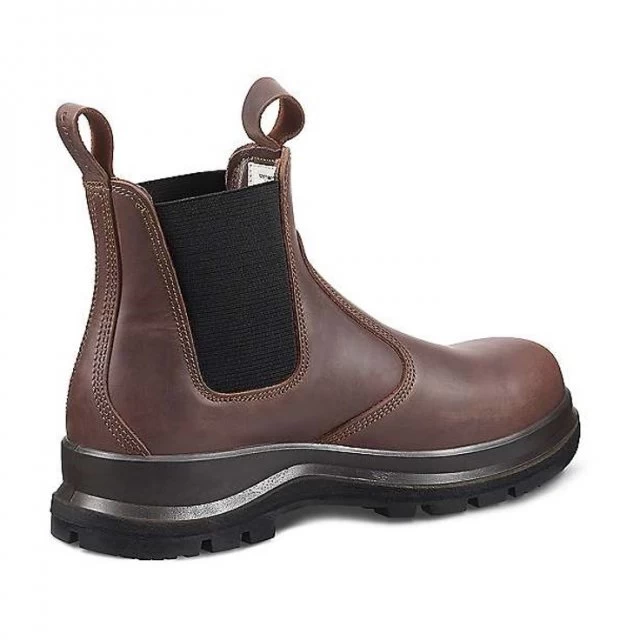 A classic Chelsea boot pattern made with quality hydro treated water-resistant leather, the elastic panels either side are designed for quick foot entry with the use of pull on finger loops, this safety boot can be worn on or off-site with ease. Built with a fiberglass safety toe, this boot upholds S3 standards and will protect your feet from 200 joules of weight and impact. Comfort is also addressed, with a fully cushioned shock absorption footbed to reduce fatigue, a lightweight non-metal anti-penetration plate prevents sharp objects piercing the sole and causing injury to the foot. The Vibram rubber outsole provides added traction in the tread design, in addition to (SRC) slip resistance (HI) insulation, (HRO) heat, and oil resistance. When you spend many hours of your workday standing, your feet will expand over time, therefore Carhartt has engineered the fit to allow space for your feet to remain comfortable. Expect Carhartt footwear to fit a half size larger than your standard footwear size.