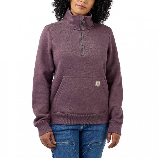 Pull on this women′s half-zip sweatshirt to cover up while you run errands or tackle chores. Midweight cotton-blend fabric and a cozy mock turtle neck make it ideal for cool days. A front pouch provides a place to warm hands and has a hidden pocket for your phone.