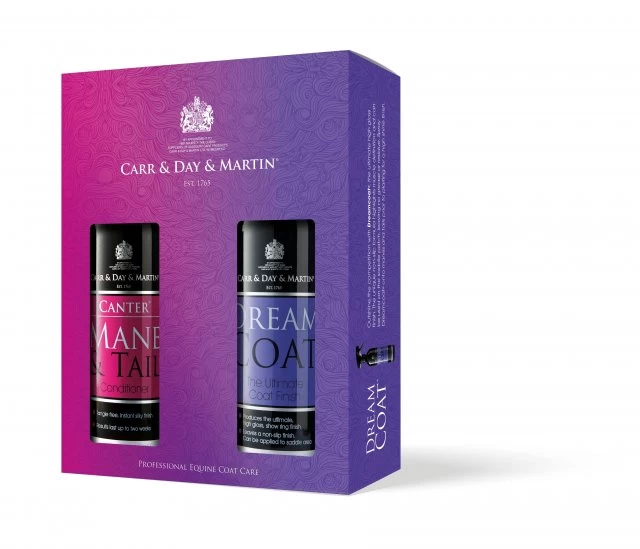 Presenting this new coat care duo box. Favourite grooming essentials to make grooming easy at home or to stand out from the crowd on competition day. With Canter, Mane & Tail and Dreamcoat, horses will be silky, shiny and smell great from head to tail.