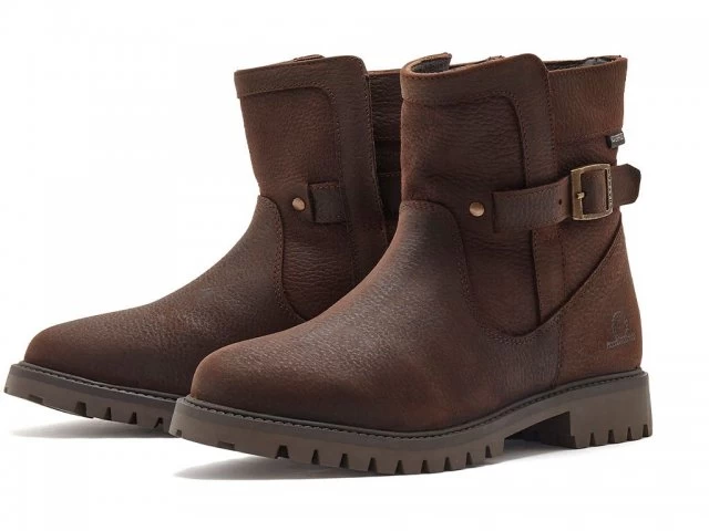 Offering style and substance, the new Ripon ankle boots in Chatham’s country collection are fully waterproof, so you can pull them on whatever the weather. Made using a stylish blend of 100% waterproof premium leather and nubuck in rich dark brown, these women’s ankle boots are a pull-on style with buckle detail, Chatham logo and a waterproof microfibre membrane lining. They have Chatham’s sole spring poron performance cushioning, which is anti-bacterial and offers maximum comfort and shock absorption, and they sit on a heavy duty rubber sole.
