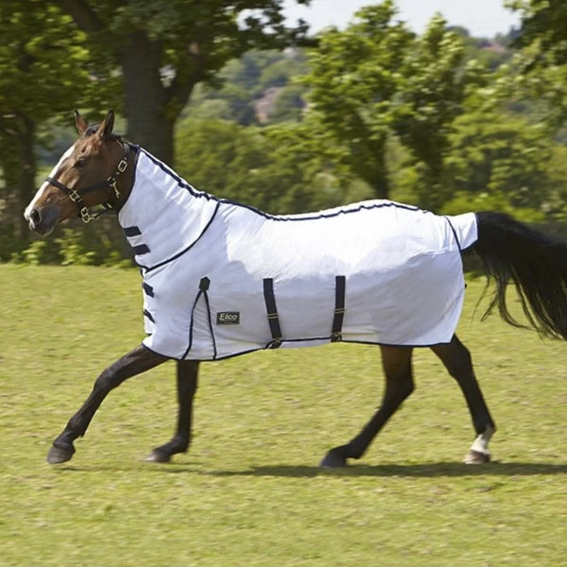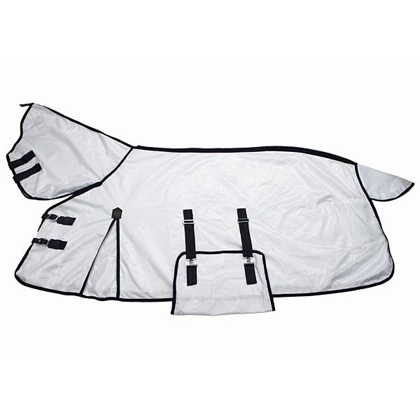 Designed with summer in mind, this cool mesh fabric also keeps flies at bay. With a built in neck cover, double breast straps, belly flap, shoulder gussets and tail flap. lined neck to avoid rubbing,A loop fastening is provided at the top of the neck to fasten the neck piece to the headcollar to avoid slipping,