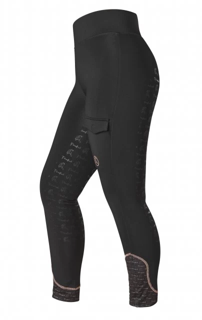Fashionable and practical ladies stretch breeches made from a Micro Polyester and Spandex Mix. Silicon sticky strips on the rear offer comfort in the saddle with a high waistband and silicon grip knees gives this product a practical edge. Bright silicon Firefoot text logo and bright stretchy Lycra ankles make for a sporty look. Includes internal mobile phone pocket. (88% Micro Polyester and 12% Spandex)