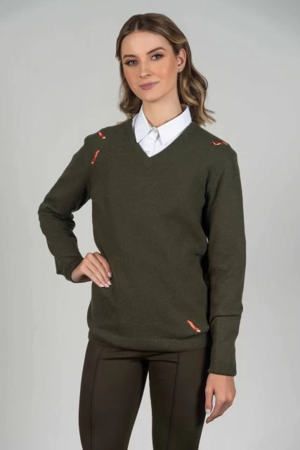 Hartwell’s newest knitwear piece is a v-neck style featuring a cute, embroidered fox motif on the shoulder and waist. This is going to be a popular choice.