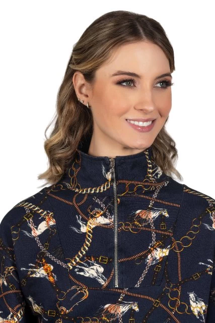 Hartwell’s latest Suzy cotton sweatshirt is a super soft and light fabric. With a zip and a new equestrian chains print on a rich navy cotton fabric, it’s the country casual
