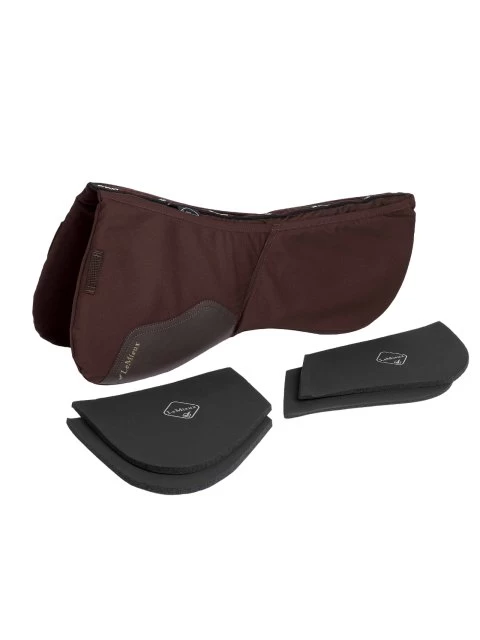 Simple and neat solution to adjusting saddle fit. Pads can be variously inserted to make a ‘front riser’, ‘back riser’ or correct bi-lateral imbalance or just create another layer of shock absorption for the horse.
