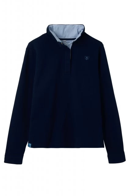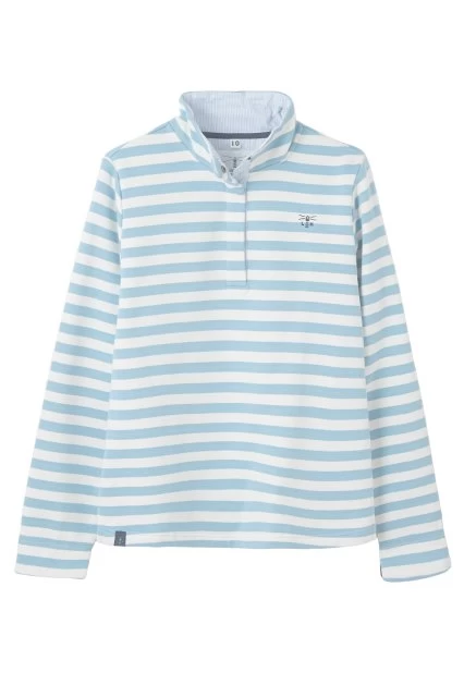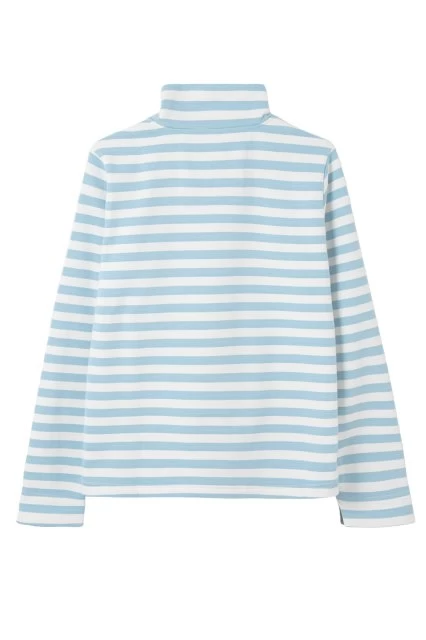 This cotton brushed jersey top is the versatile top you need for the coming months. The classic style works as a cover-up on cooler summer evenings, on bracing seaside holidays or on outings where the sun doesn’t always make an appearance. A funnel neck with a popper half opening adds an extra element of detail to this pullover and the pale blue stripe and navy colour options ensure this piece will complement other wardrobe items perfectly.