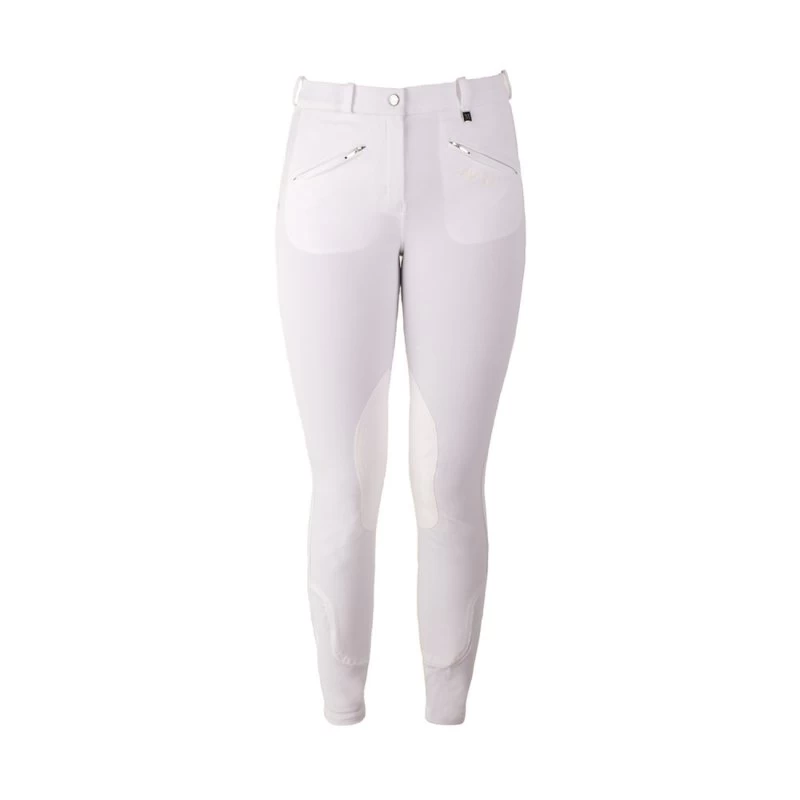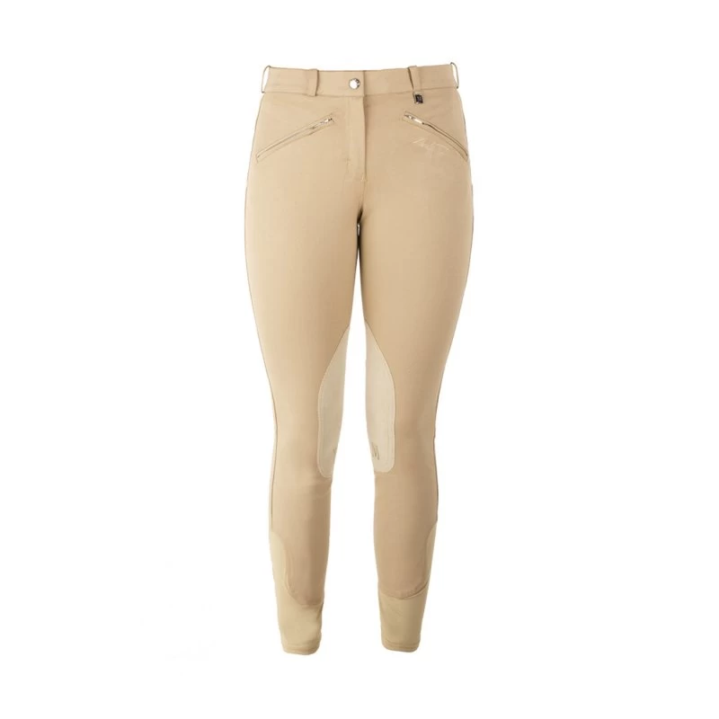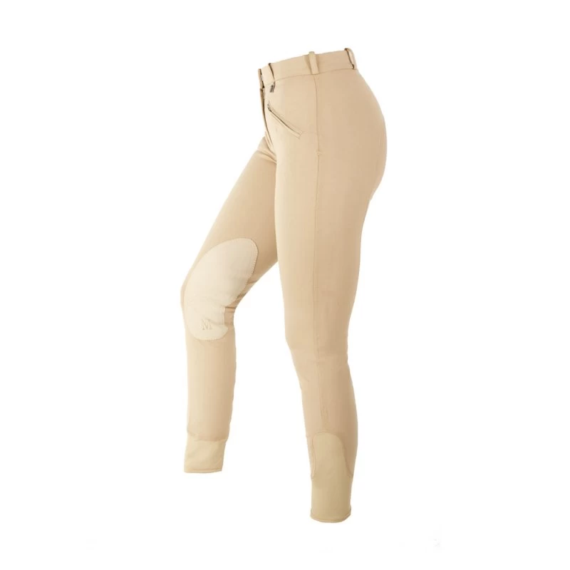 Mark Todd Gisborne Ladies Breeches. A durable, comfy, breathable Breech from the Mark Todd range. Self fabric seat, ultra grip knee patch, two zip pockets and belt loops.