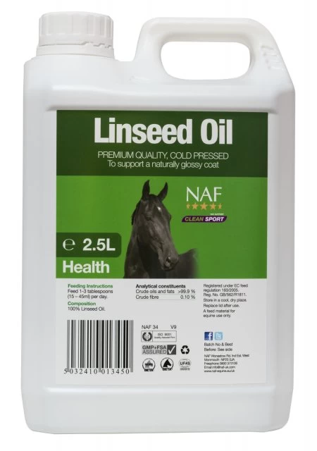 Supports general health and maintains a rich, natural shine to the coat. Supplementing with Linseed Oil can be used as an ideal form of slow release energy. NAF only use pure cold pressed Linseed Oil, obtained without the potentially harmful solvent extraction process. NAF Linseed Oil is safe, good quality and suitable for all horses and ponies.