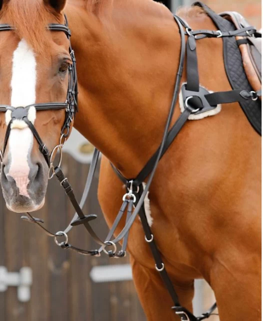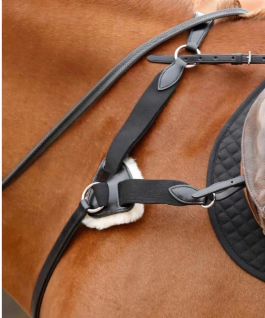 Super strong, elasticated straps have been used high up near the horses shoulder to help decrease restriction and both the shoulder points and the chest pad are padded with luxurious wool for extra comfort. Removable running martingale/neck straps can be used to help keep your horses head at a controllable height. Two D-rings have been stitched on to the chest strap so that the martingale piece can be lowered or training aids can be attached. Finished with premium stainless steel buckles, clips and fixtures. The Invorio is the perfect breastplate for riders who require total peace of mind that their saddle will always be in prime position.