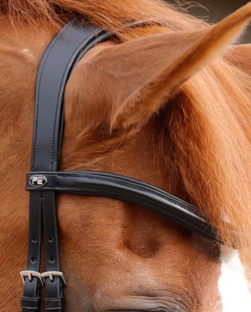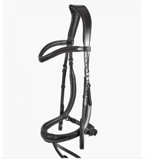 The anatomically shaped, padded poll piece has been crafted to distribute pressure over the less sensitive areas of the poll and away from the ears. A padded, shaped browband creates definition and the round raised design offers an elegant aesthetic. Our anatomically shaped snaffle noseband with integrated flash dips down to avoid contact with the horse’s cheekbones, alleviating pressure and potentially heightening performance.