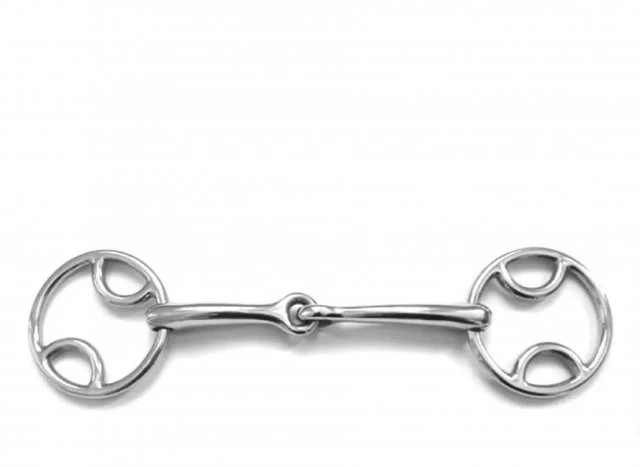 The loose ring bevel allows a mild lever action with a snaffle mouth. The snaffle mouth applies pressure to the bars, squeezing the tongue. From a size 5″ upwards the ring size increases to keep the bit in proportion for larger horses. Mouthpiece thickness: 12mm (4″), 14mm (4.5″ – 6″). Cheek height: 55mm (4″, 4.5″, 5″), 70mm (5.5″). Stainless steel is the most common material for bits. Durable, easy to clean, tasteless and does not rust.
