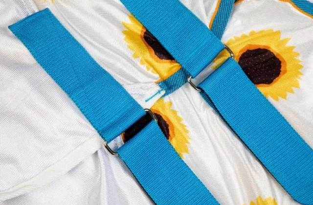 The Tempest Original sunflower print fly rug is made from a tight knit mesh fabric which provides a barrier to biting insects whilst remaining light and airy, keeping the horse comfortable in warmer weather. The breathable fabric helps keep the horse from over heating and reduces the risk of sunburn and sun bleaching. Further features: 80% UV blocking*. Ultra-breathable. Anti-sun bleach. Lightweight & airy. Buckle chest straps. Adjustable fillet strap.*Effectiveness may diminish over time. Test carried out in accordance to BS EN 13758-1:2002+A1:2006.