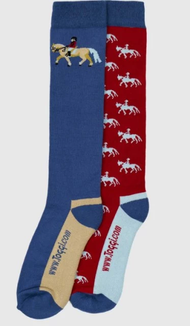 Toggi Show Jumper Socks 2pkOne Size 4-8 Blue/red